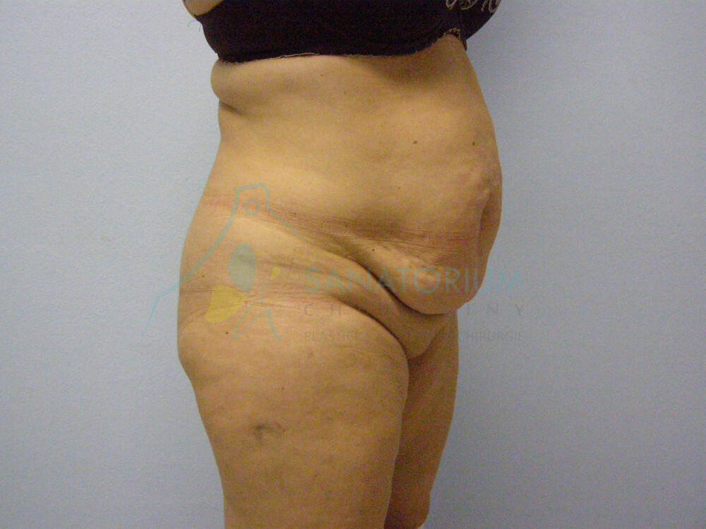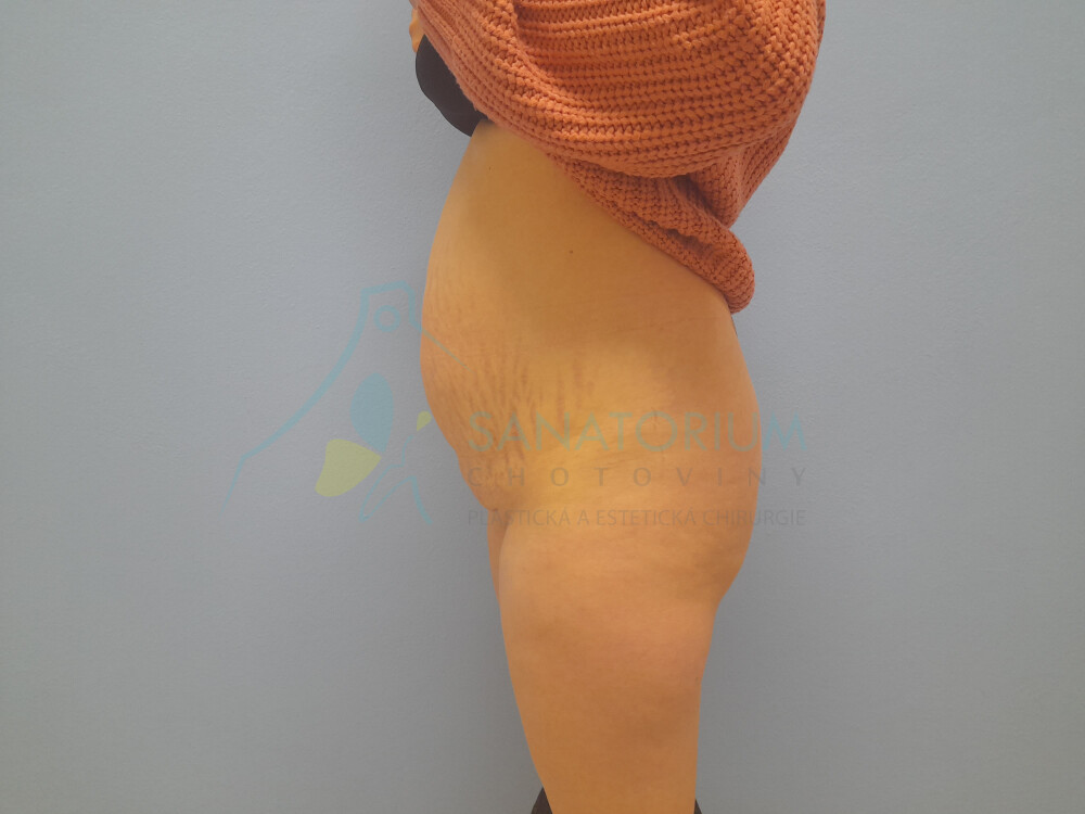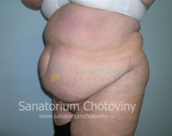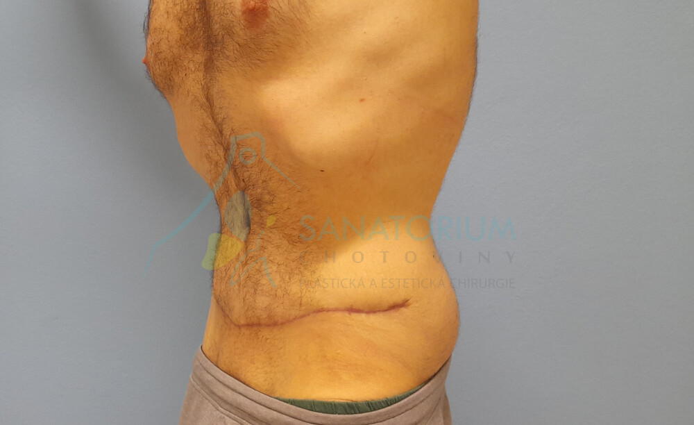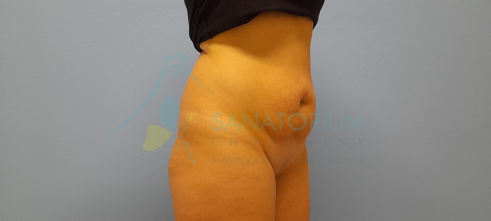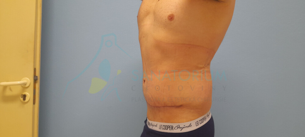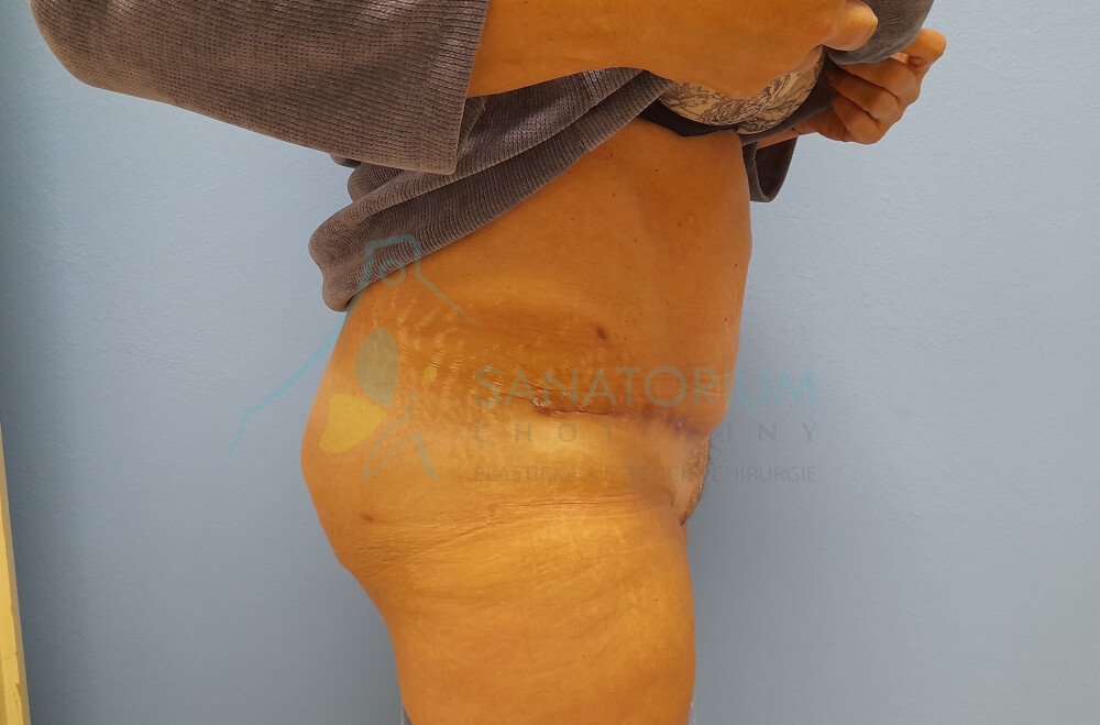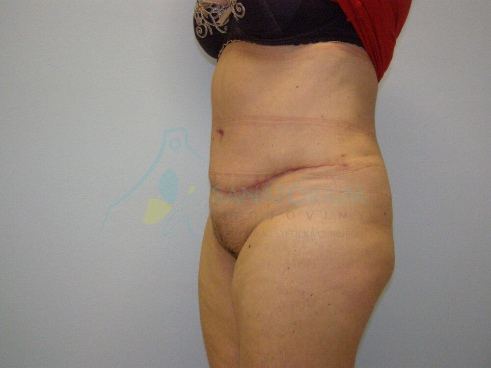 abdominoplastika s liposukcí boků, odsáto 500ml, resekce 870g