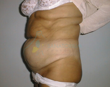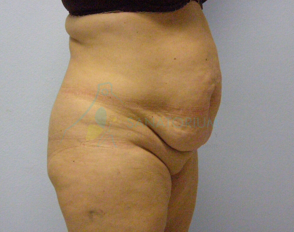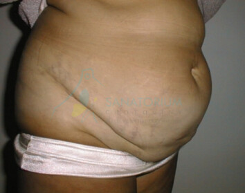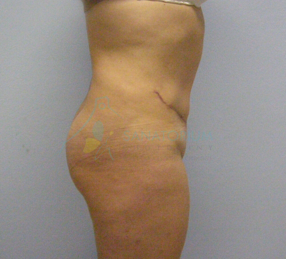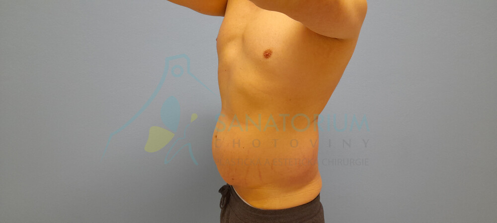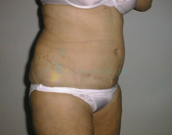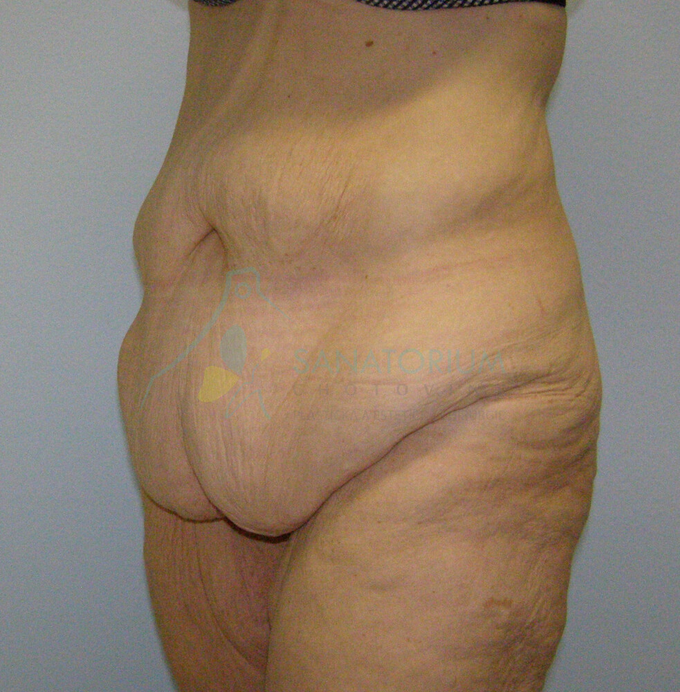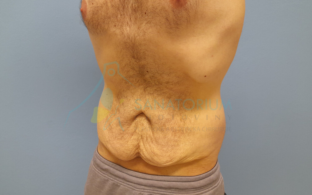 abdominoplastika s liposukcí boků, odsáto 500ml, resekce 870g