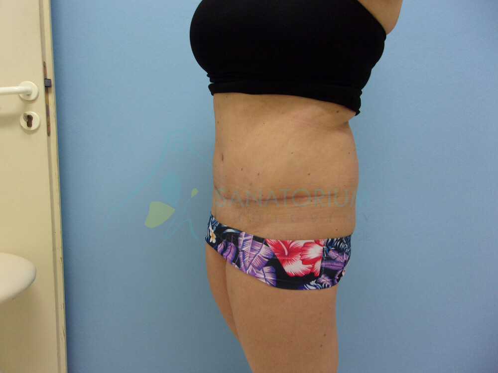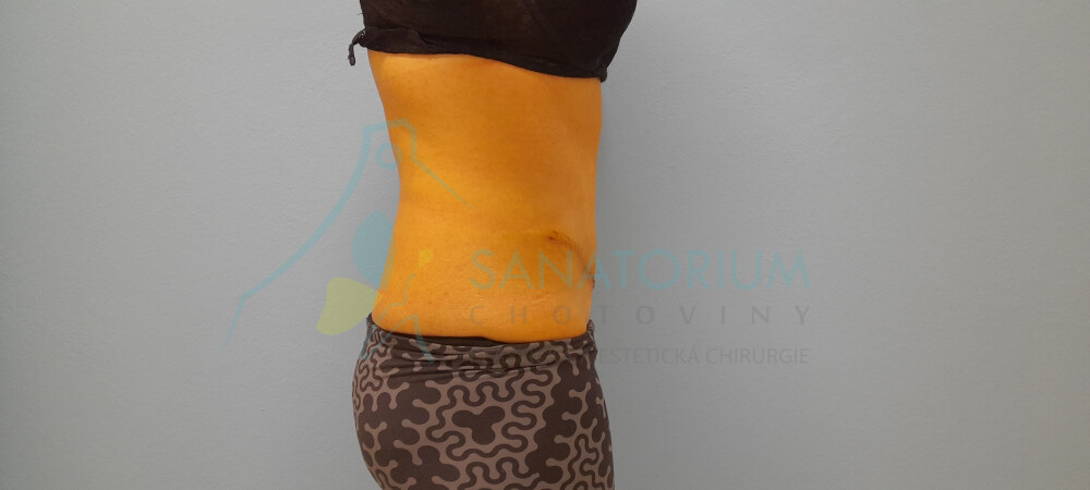 abdominoplastika s liposukcí boků, odstraněno 1.380g a odsáto 600ml