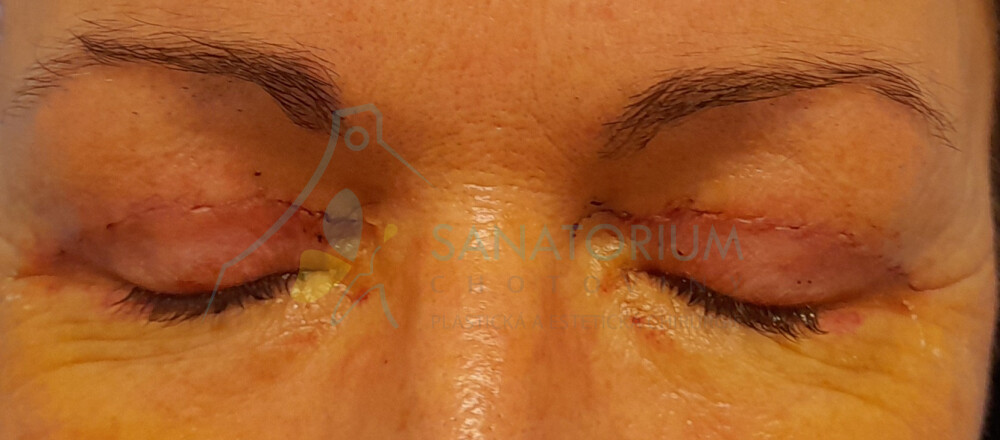 foto 1 týden po operaci, přetrvává pouze otok, nadbytky kůže a tukové váčky jsou odstraněné