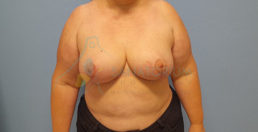 redukce prsou, vpravo redukce 455g, vlevo 571g